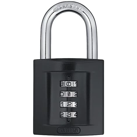 Cadenas à combinaison noir en zamak 50 mm à 4 chiffres en façade, 52 x 34 x Ø 8 mm.