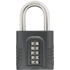 Cadenas ABUS à code 158/65 Anse de 10 mm d’épaisseur en acier cémenté à double verrouillage : très haute sécurité. Code de verrouillage à 5 chiffres programmable : 100 000 combinaisons possibles. Boîtier en fonte de zinc coulée sous pression : très grande robustesse. Idéal pour la protection d’objet avec un risque de vol modéré, hangars, chaînes, portes, casier, armoires…