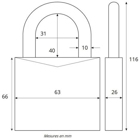 Cadenas ABUS 158/65 de haute sécurité. Apparence robuste et massive dissuasive. Verrouillage et déverrouillage par code à 5 chiffres : impossibilité de crocher. Utilisation à l’intérieur comme à l’exterieur : résiste aux intempéries. Le double verrouillage de la anse du cadenas permet de maximiser la sécurité en cas de tentative de cassage. Fonctionnement du verrouillage du cadenas de haute écurité ABUS 158/65 : Dimensions du cadenas ABUS 158/65 : Epaisseur du corps : 2,6 cm Largeur du corps : 6,3 cm Hauteur corps + anse : 11,6 cm Diamètre anse : 1 cm Espace entre les deux anses : 3,1 cm Hauteur de la anse : 4 cm Poids : 0,45 kg
