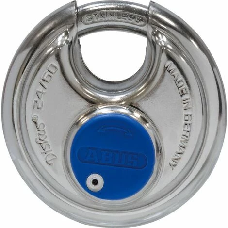 ORIGINAL ABUS DISKUS® – SÉCURITÉ 100 % INOX Le cadenas ABUS discus est une forme spéciale de cadenas avec des avantages particuliers.La forme des freins à disque empêche efficacement les méthodes de dépassement les plus courantes. La petite ouverture du temple due à la construction n’offre pratiquement aucun espace pour les attaques contre le temple. En raison de l’utilisation prédominante de l’acier inoxydable, la serrure à disque est particulièrement utilisée là où la sécurité et la protection contre la corrosion sont requises. L’ABUS Diskus 24IB peut être utilisé pour verrouiller des camions, des portes, des portails, des granges, des caves, des hangars, etc. Idéalement, un moraillon ABUS Diskus doit être utilisé afin que l’anse de la serrure ne puisse pas être attaquée avec des outils d’effraction.