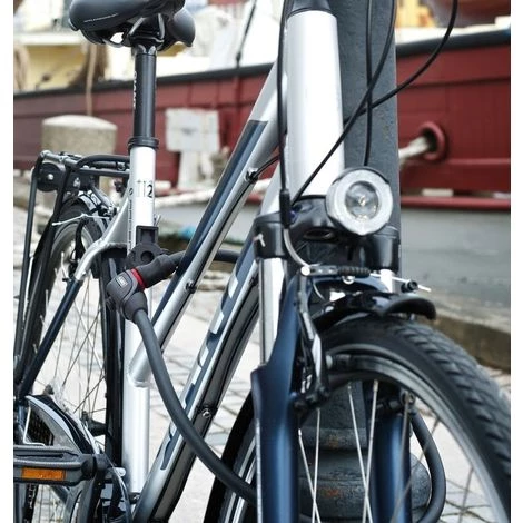 Cadenas velo abus Steel-O-Flex Phantom 8950 avec cable d’une épaisseur de 1,2 cm pour apporter une bonne première protection contre le vol des vélos. Excellent rapport qualité prix pour sécuriser les vélos Le cylindre Abus Extra-classe qui équipe cet antivol vélo augmente la résistance contre les tentatives de crochetage (simulation de la présence de la clé à l’intérieur de la serrure pour la déverrouiller) Cable robuste en acier qui est très flexible ce qui permet de naviguer facilement entre les différentes parties du vélo. Format compact, très léger et surtout très confortable à utiliser au quotidien. La peinture du vélo est protégée par le revêtement synthétique anti-rayures Pas besoin de la clé pour verrouiller le cadenas velo abus. Un « clic » vous fait comprendre que votre antivol est bien attaché. Livré avec 2 clés réversibles qui peuvent s’insérer dans les deux sens. Taille : 180cm Avantages du cadenas velo abus spirale: Modèle offrant une bonne première protection contre le vol des vélos tout en étant très flexible et très léger (seulement 700 grammes). Longueur de 180 cm qui permet d’attacher de nombreux vélos entres eux, de sécuriser les roues et le cadre et de s’attacher fermement à un point fixe même si ce dernier est très large. Cable épais de 1,2 cm d’épaisseur, n’abîme pas la peinture du vélo, facile à transporter avec son support. Support de transport : Pack qui comprend un support de transport à attacher en un tour de main au niveau de la vis de fixation de serrage de la selle. Diamètre classique de 5 à 8 mm Permet de clipser facilement votre antivol velo Abus à ce dernier. La fixation derrière la selle permet de ne pas gêner le pédalage contrairement à d’autres modèles fixés au niveau du cadre. Caractéristiques techniques : Dimensions : Longueur du cable : 180 cm Epaisseur du cable : 1,2 cm Couleur : Noir Poids : 700 grammes