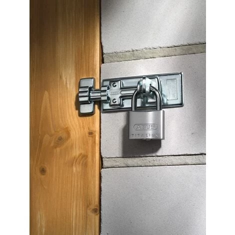 Ce porte-cadenas de Abus dispose d’un pêne coulissant pratique pour les portails de jardin et les portes de hangar, par exemple. Il convient pour une utilisation avec un cadenas. Le cadenas de cet ensemble dispose d’un boîtier massif en aluminiumi spécial Titalium™. Son poids est léger et sa sûreté élevée. Son anse est en acier cémenté. Il dispose d’un double verrouillage de l’anse. Pour le porte-cadenas : les vis sont cachées, le pêne est renforcé et est anti-corrosion grâce au chromage au zinc.