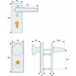 ABUS 374029 KLZS714 F1 EK Bloc Poignées Et Serrure Avec Protège-cylindre Rond En Aluminium